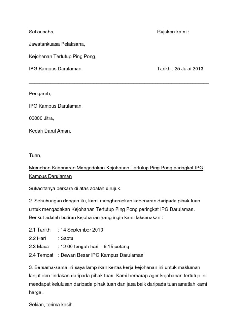 Surat Memohon Kebenaran Mengadakan Pertandingan Jpn Johor Pdf